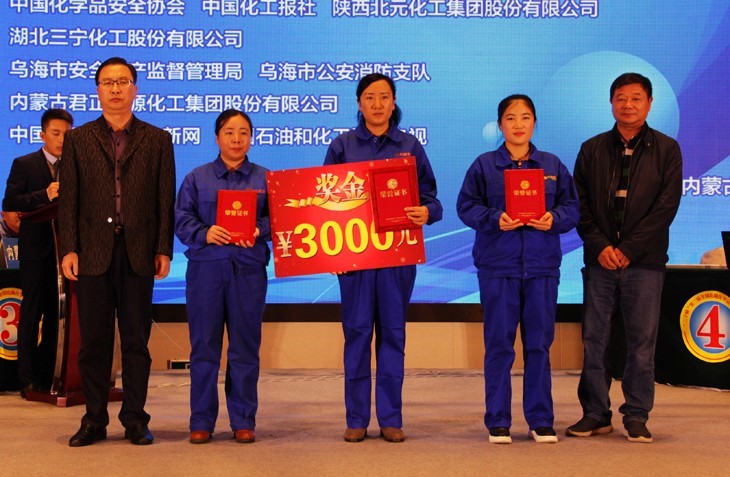 10月26日,由公司黨委、工會及安全生產部共同承辦的“三寧杯”第三屆全國危化品安全知識競賽氯堿專場比賽在烏海市興泰名都酒店舉行,本次競賽由國家安監總局、中國石油和化學工業聯合會指導,中國化學品安全協會、中國化工報社、陜西北元化工集團主辦,烏海市安監局、烏海市公安消防支隊協辦。我公司代表隊及上海氯堿、新疆天業、億利電石公司、內蒙古宜化、烏海化工共6支隊伍參加了競賽,公司生產管理總部總經理吳貴榮出席比賽并為獲獎者頒獎。