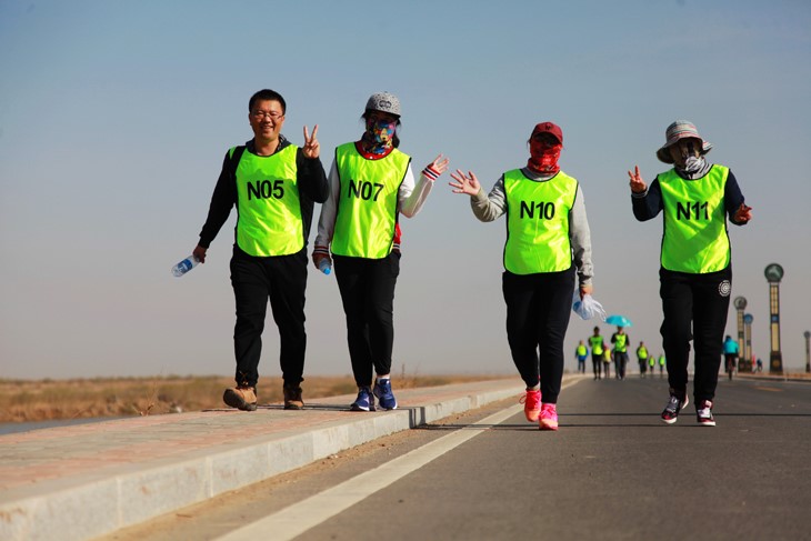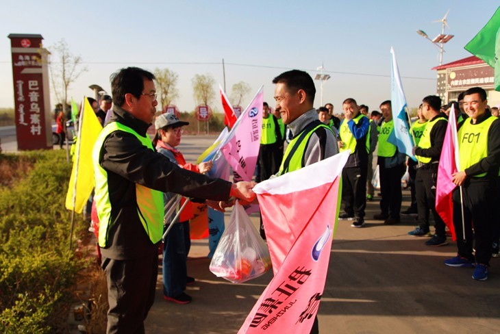 在長約25公里的徒步路上,大家統一著裝,各個精神抖擻,一邊交流感情一邊記錄美景,既強健了身體,也滋潤了心靈。隨著徒步公里數的增加,隊伍逐漸拉開了距離,好在貼心的后勤工作人員在路上設立了補給站,應急救援車也時刻待命,為大家提供了最好的服務。