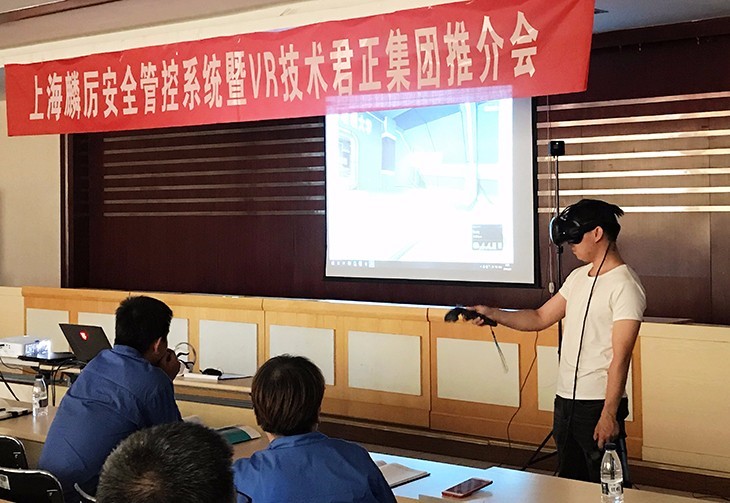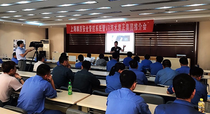 本次培訓邀請上海麟厲安全管控公司的鄭老師到現場講授。鄭老師介紹完VR安全培訓如何開展后,通過實例講演,利用立體錄影技術,將實際工作的場景放到VR培訓系統中,實現完全模擬現場工作場景,使培訓效果更能接近實際。現場還演示了包括觸電、火災等事故的發生以及焊接標準作業流程。