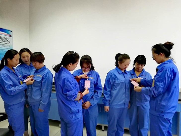在6月19日烏達化工檢驗組的安全活動現場,大家正小聲交流著。