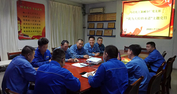 7月24日,烏達化工氯堿分廠黨支部開展了“我為大檢修承諾”主題黨日活動,號召支部全體黨員用實際行動為大檢修做貢獻。