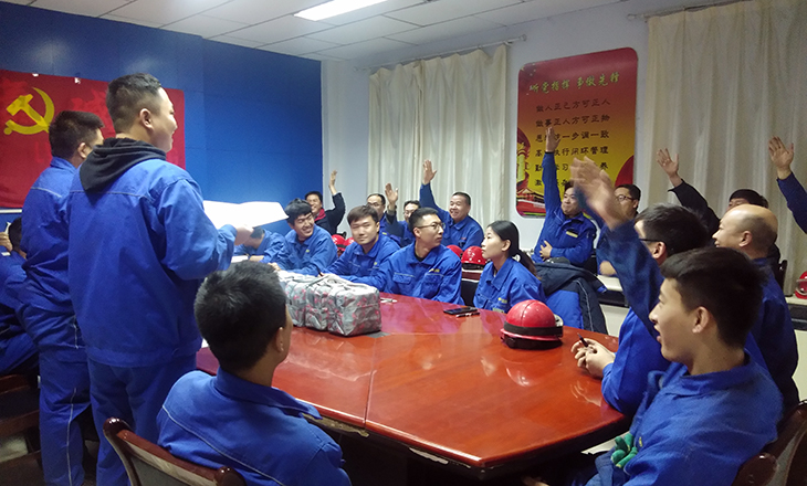 本次主題黨日活動分為“消防安全演練”和“消防安全知識競賽”兩部分,消防安全演練主要圍繞火災現場隔離疏散、應急搶險救援等幾個方面開展。消防演練結束后,電解、氯氫、成品三個裝置的代表隊,在黨員活動室進行了近兩個小時的激烈PK,在觀眾互動搶答環節,大家爭先恐后、積極參與的熱情,迅速將活動氣氛推向了高潮。