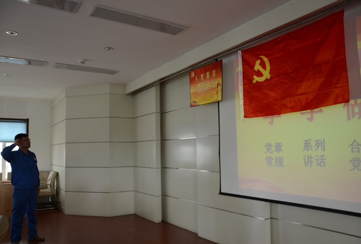 黨員大會上,烏達化工黨總支宣傳委員李斌帶領全體黨員面對鮮紅的黨旗,舉起右拳,重溫了入黨誓詞,誓詞聲聲,進一步堅定了信仰,增強了黨性觀念。