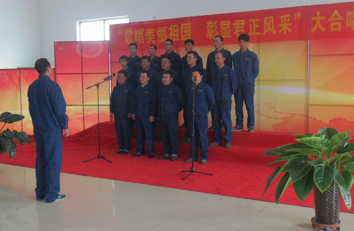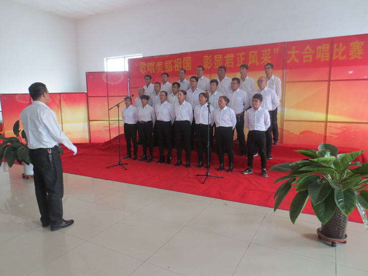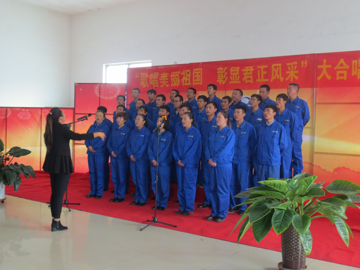 10月26日,雖說秋風蕭瑟,給人一種冬天即將到來時寒冷的感覺,然而在實業部二期食堂卻暖意融融。這里正在上演著以“歌唱美麗祖國 彰顯君正風采”為主題的大合唱比賽,公司工會副主席兼黨群工作部主任郭文宇、實業部領導班子及來自各分廠、部室的參賽人員和觀眾近150人參加了活動。比賽特意邀請公司人力資源部高級主管張艷、質計中心主管何芳與各分廠、部室負責人共同擔任評委。