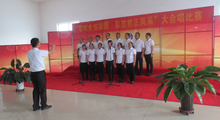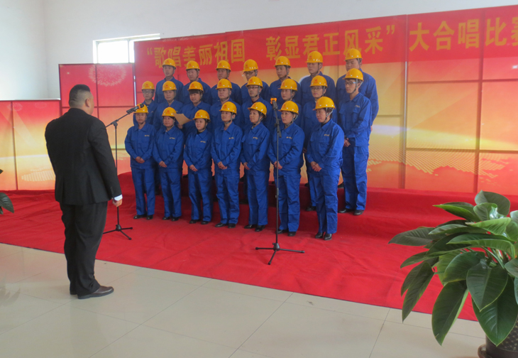 比賽在原料分廠的一首《映山紅》中緩緩拉開了序幕,人們伴隨著音樂沉浸其中,仿佛看到了當年老百姓對紅軍的期盼和熱愛,接著一首《咱們工人有力量》,唱出了我們企業工人奮發向上的精神面貌。《歌唱祖國》、《沒有共產黨就沒有新中國》、《人民解放軍軍歌》、《打靶歸來》等一首首紅歌相繼“亮相”,嘹亮的歌聲回蕩在耳畔,再次激發了在場人員的熱情,贏得陣陣掌聲。為豐富比賽環節,中間還穿插了由各分廠選送的獨唱或二重唱,他們以自己獨有的方式表達了同一種感情——對祖國的愛和對公司的美好祝愿。